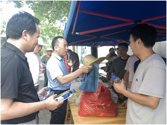 “注意防護(hù),小心中暑!”在臨時(shí)休息區(qū),雨民董事長(zhǎng)將防暑藥品、草帽、毛巾和礦泉水等防暑物資發(fā)放給農(nóng)戶和裝卸工人,與他們展開(kāi)親切交談,了解今年的糧食收成情況,詢問(wèn)其對(duì)三塘公司現(xiàn)場(chǎng)服務(wù)的滿意程度等,溫和的笑容和真摯的問(wèn)候讓農(nóng)戶們倍感親切。