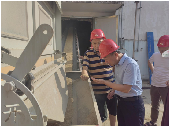 隨后,按照夏糧收購(gòu)流程,雨民董事長(zhǎng)全程考察了現(xiàn)場(chǎng)各個(gè)作業(yè)環(huán)節(jié),并聽(tīng)取了三塘公司今年政府儲(chǔ)備糧輪換收購(gòu)的情況匯報(bào)。在卸糧口,雨民董事長(zhǎng)抓取輸送機(jī)上稻谷查看今年收購(gòu)入庫(kù)稻谷質(zhì)量,再三強(qiáng)調(diào)必須把好新糧入庫(kù)質(zhì)量關(guān),并叮囑現(xiàn)場(chǎng)作業(yè)人員一定要規(guī)范作業(yè),確保人員安全。