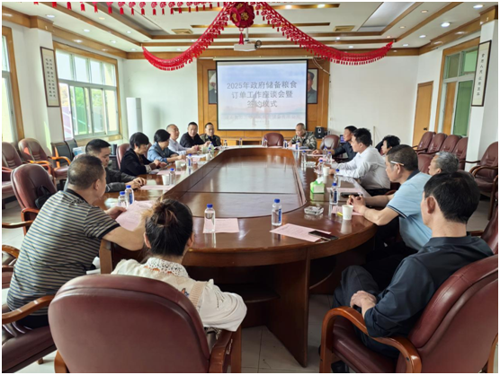劉光蘭對省、市政府儲備糧食訂單工作相關文件精神進行簡要解讀,并就響應政府政策、提高企業服務水平作出表態。三塘公司負責人介紹了2025年政府儲備糧輪換和周邊縣市種植戶的走訪調研情況。